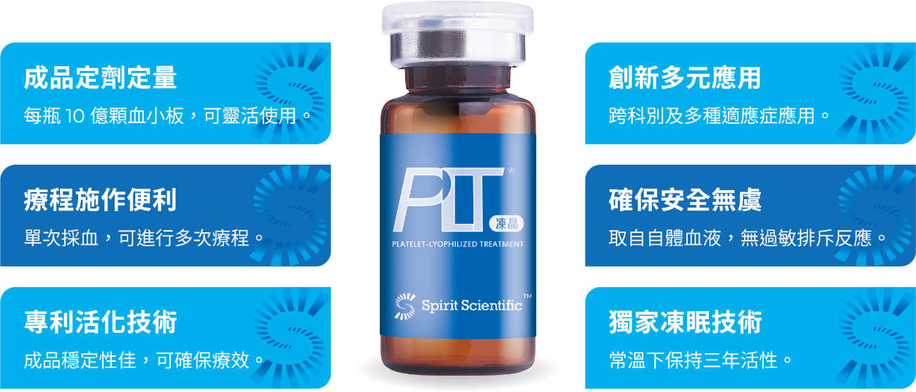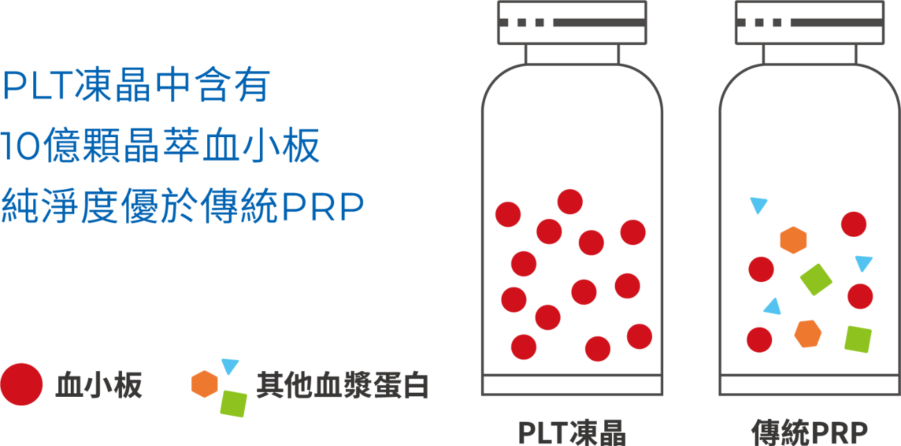 PLT(Platelet Lysate)凍晶,是從血小板中萃取出高濃度的「生長因子」,再經過低溫凍乾技術製成的精華凍晶。這些生長因子能提升肌膚修復、保水與緊緻效果。